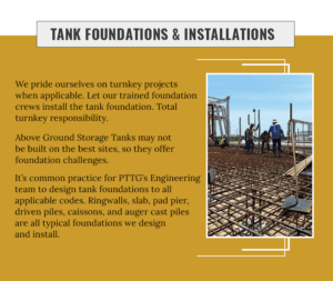 Aboveground storage tanks offer a variety of benefits over their underground counterparts, but they also have their share of challenges. At PTTG, we pride ourselves on providing turnkey solutions to meet these challenges head-on. One of the primary challenges for aboveground tank installation is foundation design.