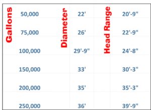 Elevated spheroid water tanks are often popular for their sleek designs and aesthetic appeal. We offer a stable spheroid water tank mounted on a single-pedestal in the following dimensions: